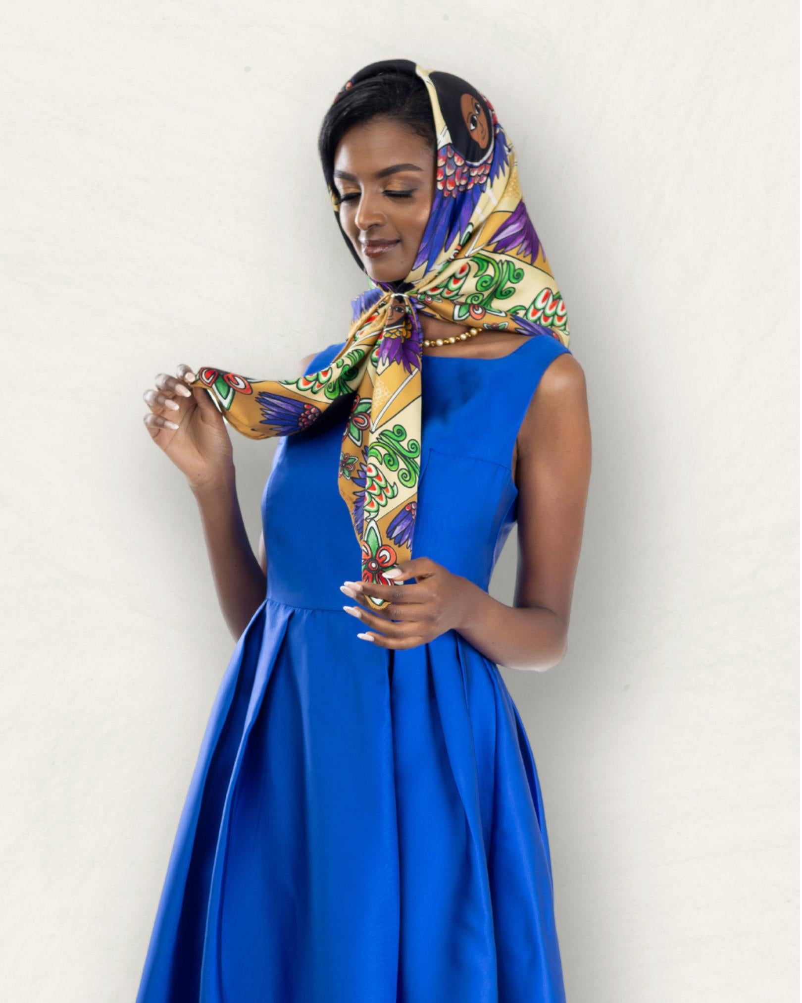 Experience the exquisite elegance of Afro Maya's first collection of 100% silk scarves, each a unique piece of wearable art. Custom-designed by Afro Maya, these scarves are inspired by the enchanting Adey Abeba flower, a captivating floral treasure found in Ethiopia. The Adey Abeba flower, with its delicate yet vibrant deep yellow petals, blooms around the Ethiopian New Year, creating a mesmerizing display that evokes a sense of purity and tranquility. This beautiful flower holds deep cultural significance in Ethiopia, symbolizing new beginnings, grace, and resilience. Its bright yellow petals and sweet fragrance enchant the senses, inviting you to immerse yourself in its ethereal beauty. Our silk scarves capture the essence of the Adey Abeba flower, reflecting the rich natural beauty and cultural heritage of Ethiopia. Each scarf is meticulously crafted to showcase the intricate details and vibrant colors of this endemic flower, offering a piece of Ethiopia's highland meadows and mountainous regions to carry with you. Wrap yourself in the luxurious softness and elegance of our silk scarves, and let the spirit of the Adey Abeba flower inspire your style.