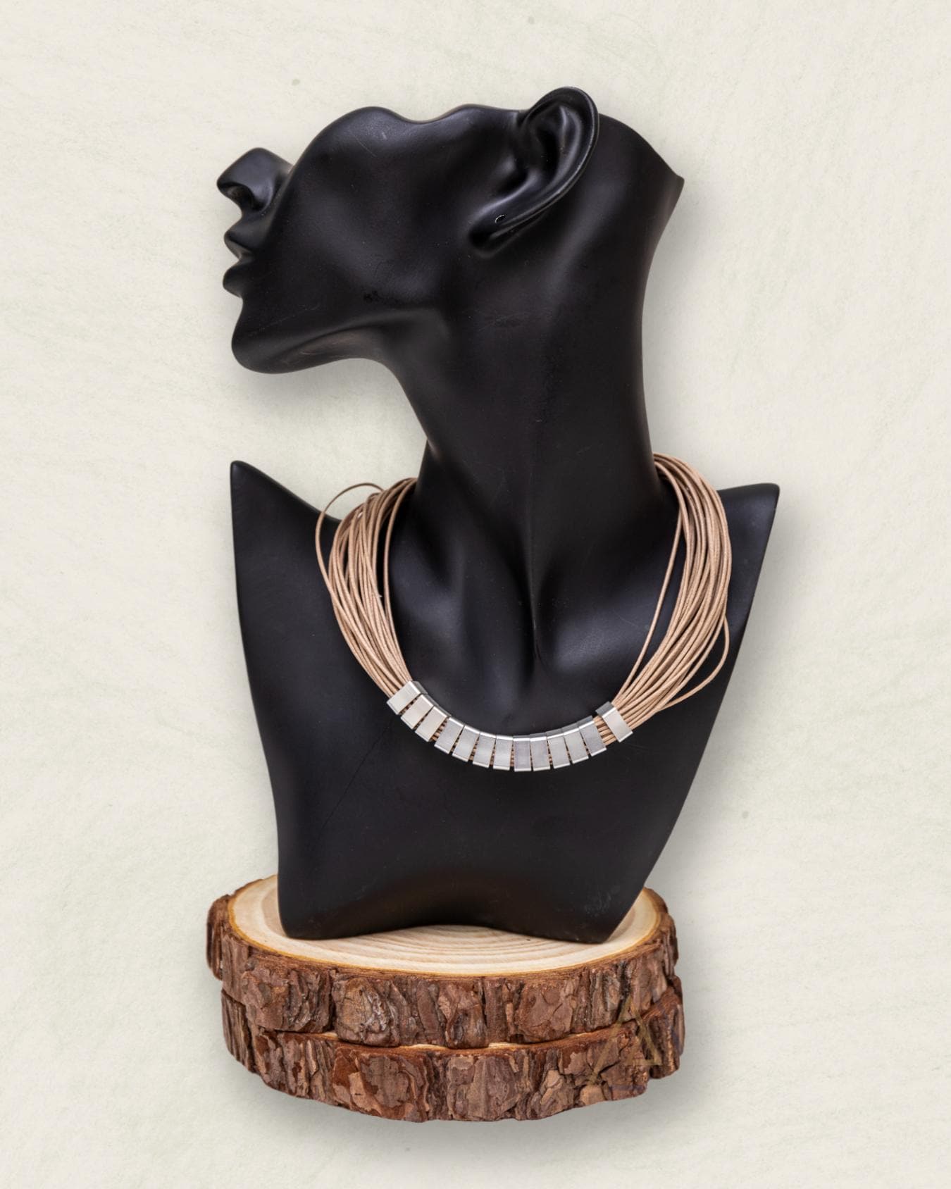 Discover the perfect blend of sophistication and durability with Afro Maya's necklaces crafted with genuine leather and premium stainless steel accents. This modern accessory exudes contemporary charm, complemented by the polished stainless steel that creates a striking contrast—both classic and edgy.